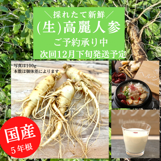 <次回12月下旬発送予定 予約販売> 国産 (生)高麗人参50g (15cm前後サイズ)